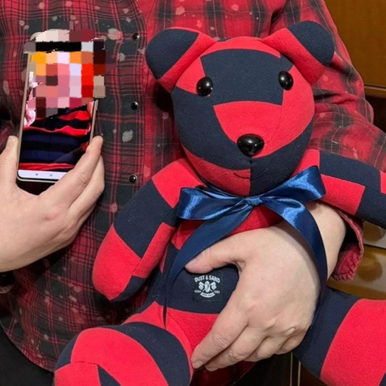Creamos con la ropa de tu familiar difunto un oso, añadiendo si lo desea un código QR para que le tenga siempre presente, añadiendo fotos, videos o sonidos.